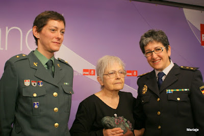 Hoy lucia feliz bien escoltada por otras dos mujeres que representaban el Premio a las Fuerzas y Cuerpos de Seguridad del estado y cuando he realizado esta foto, he visto las paradojas de la vida, y he recordado sus propias palabras, que quedaron recogidas en una entrevista de hace unos dias: